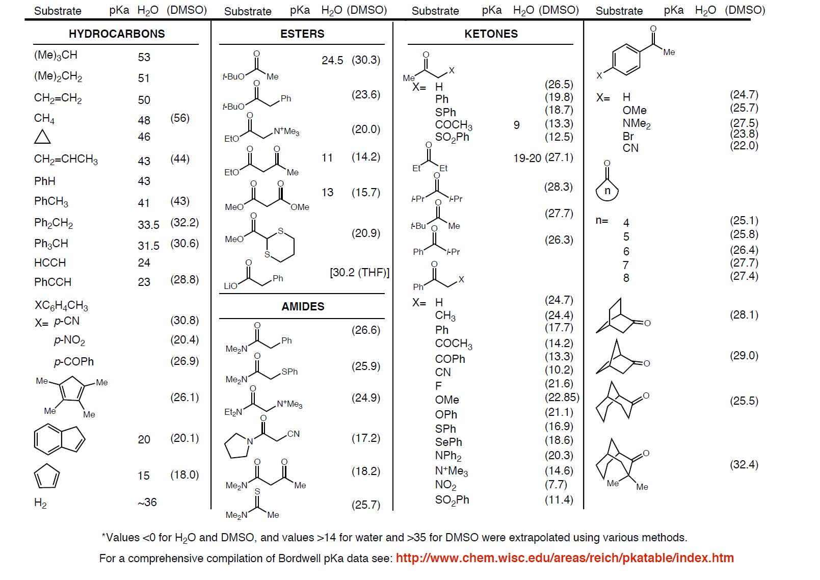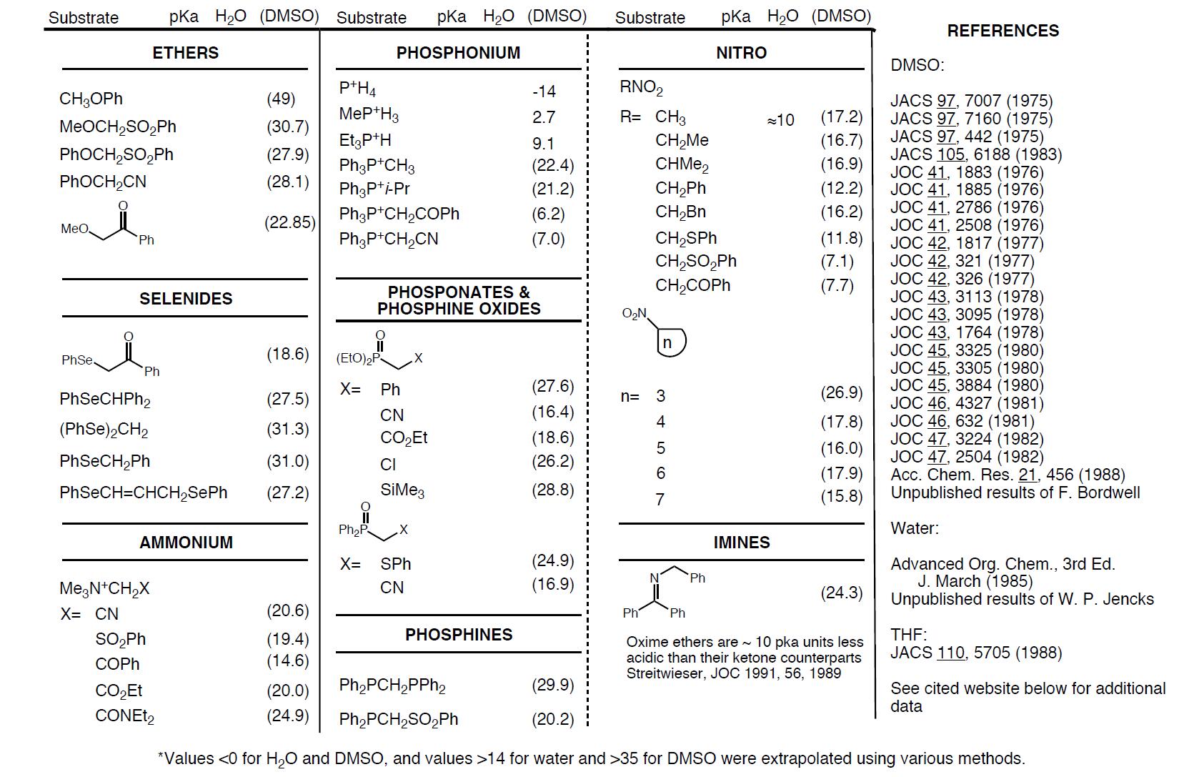 本文推薦哈佛大學 David Evans制作的化合物的pKa表, 包括以下化合物的pKa。
