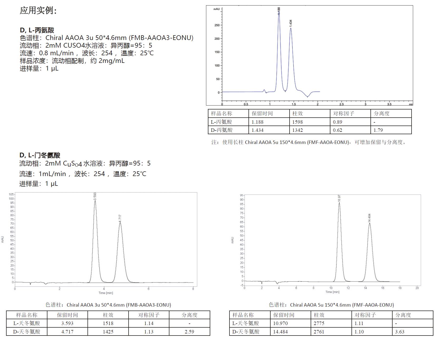 • Chiral AAOA 氨基酸與有機(jī)酸手性柱 Chiral AAOA手性柱是以高純度具有良好機(jī)械穩(wěn)定性的硅膠為基質(zhì),通過新型工藝鍵合D-青霉胺于十八烷基柱上而成的配體交換型手性柱。