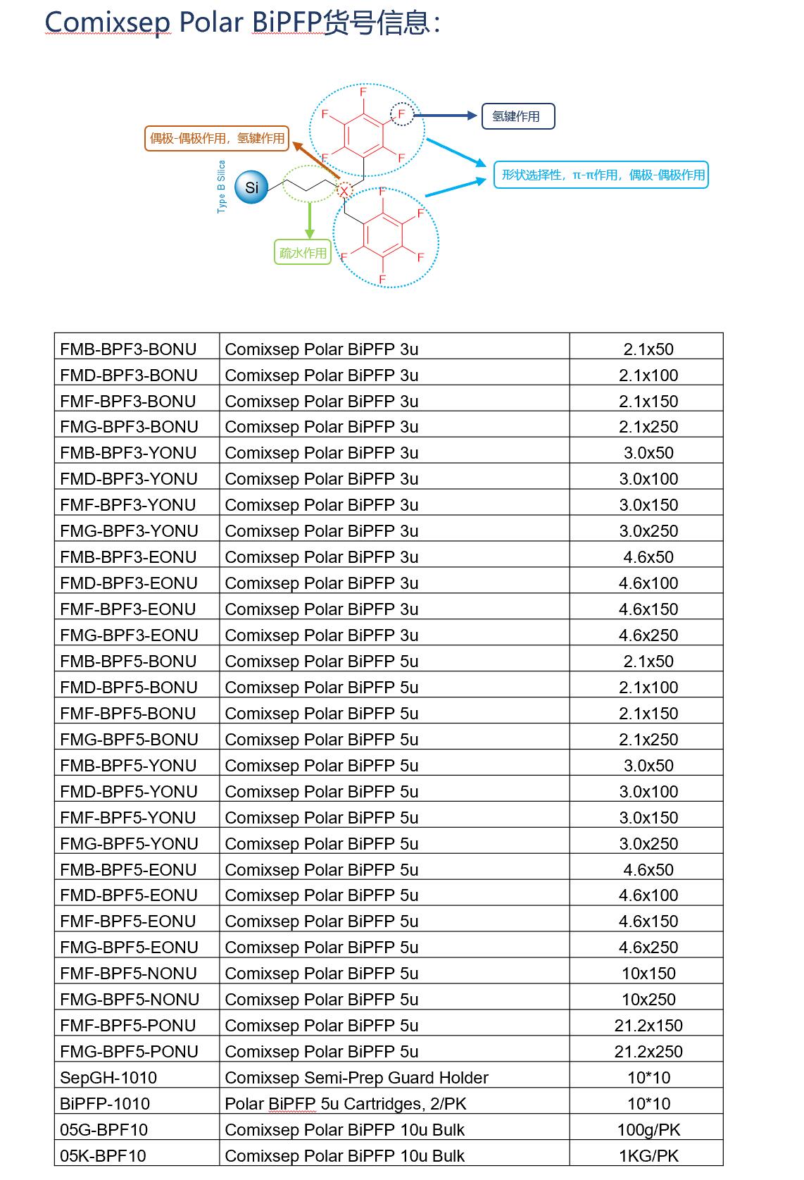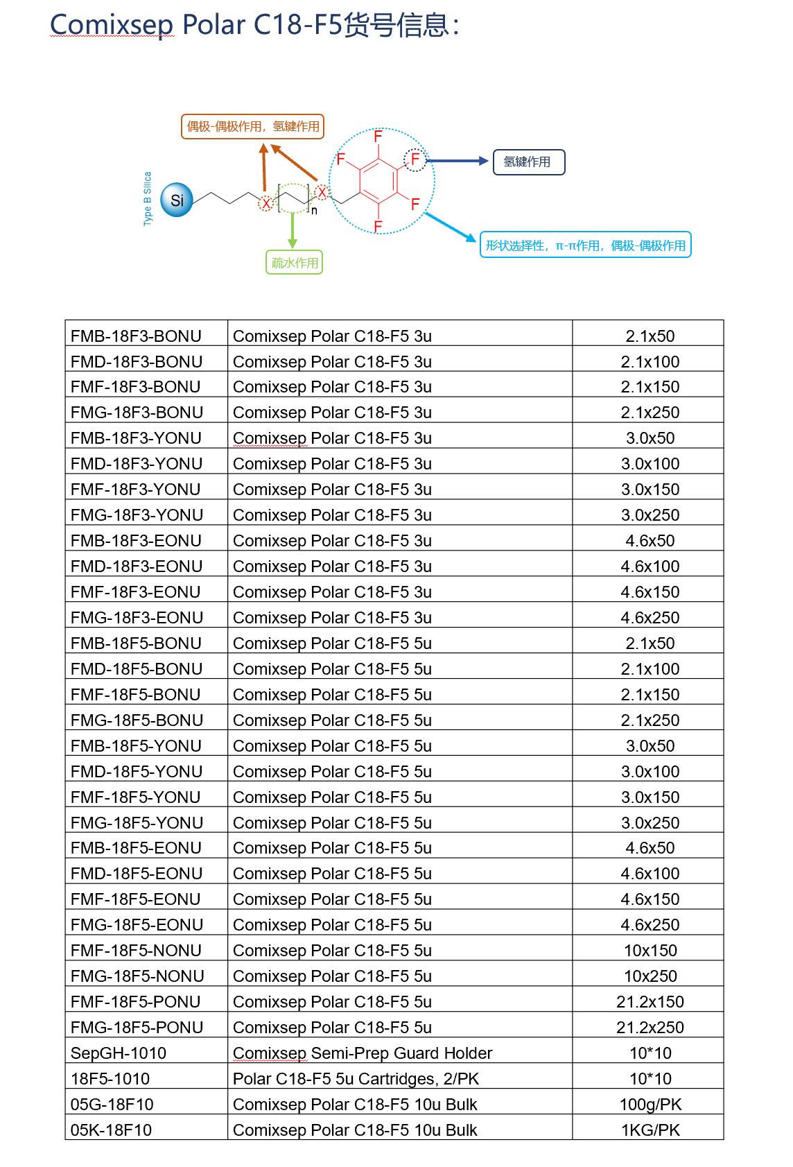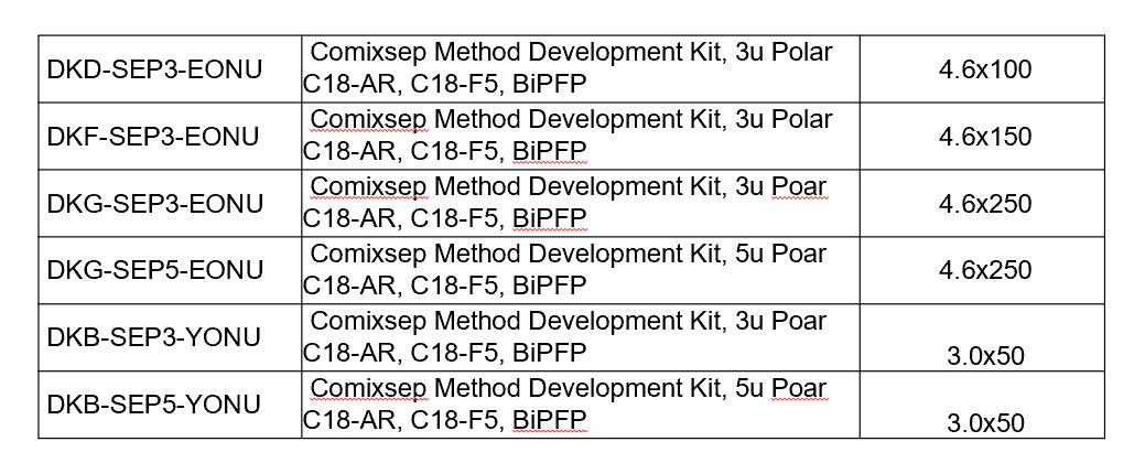 Comixsep復(fù)合反相固定相方法包貨號信息