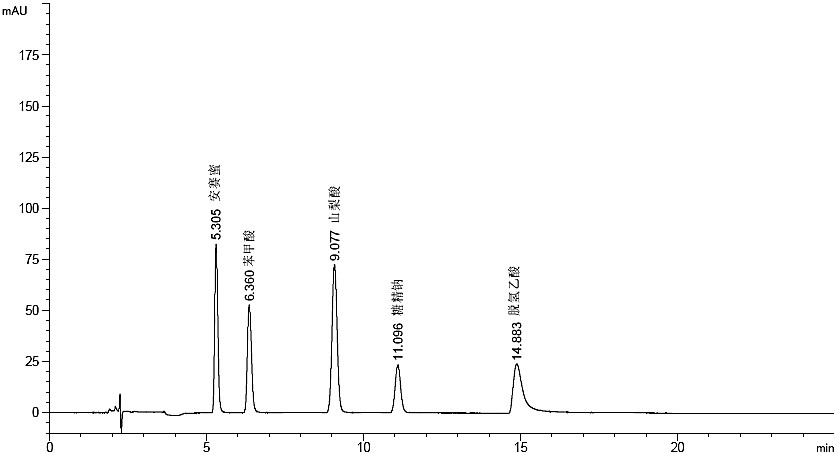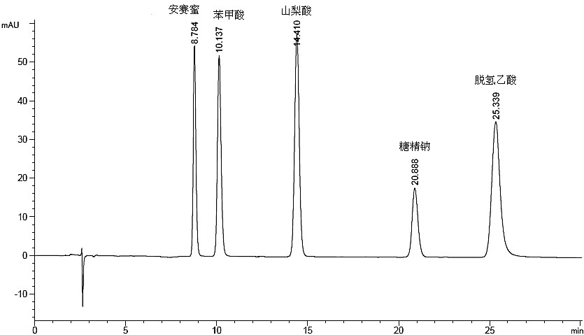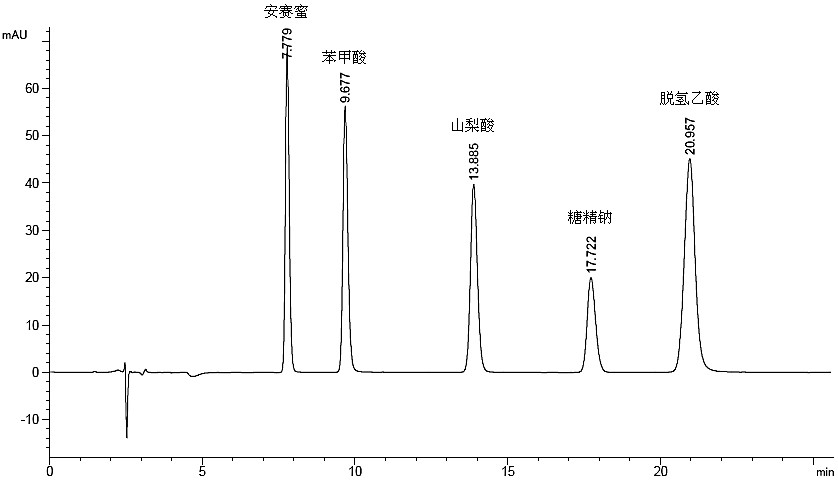 安賽蜜、苯甲酸、山梨酸、糖精鈉和脫氫乙酸五種防腐劑的同時(shí)檢測(cè)